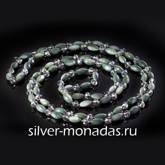Бусы из перламутра серого цевта и чешскими кристалами.